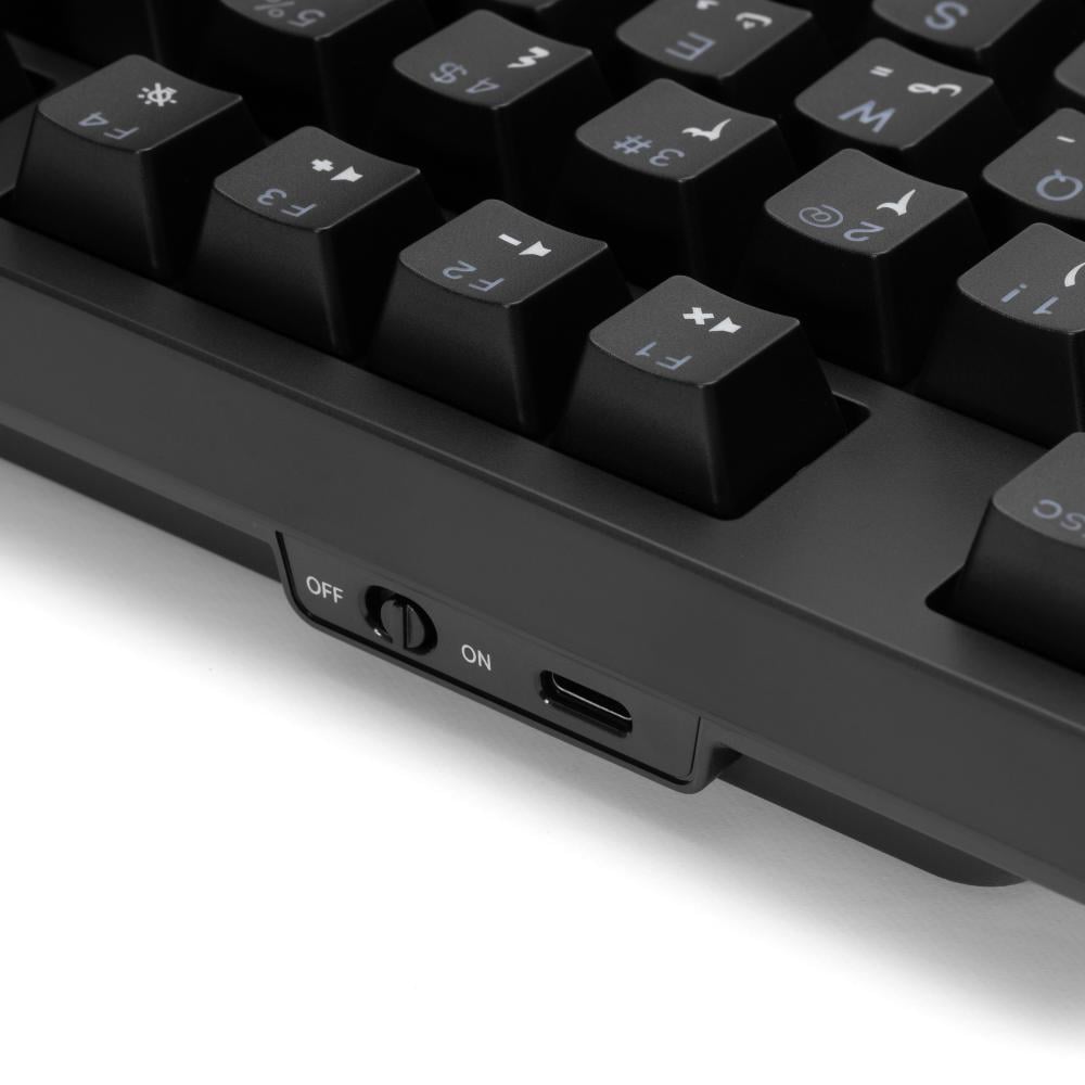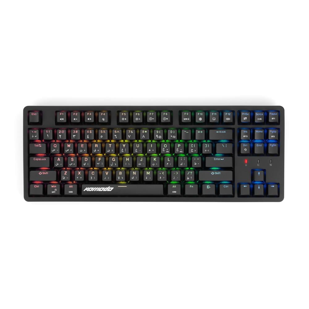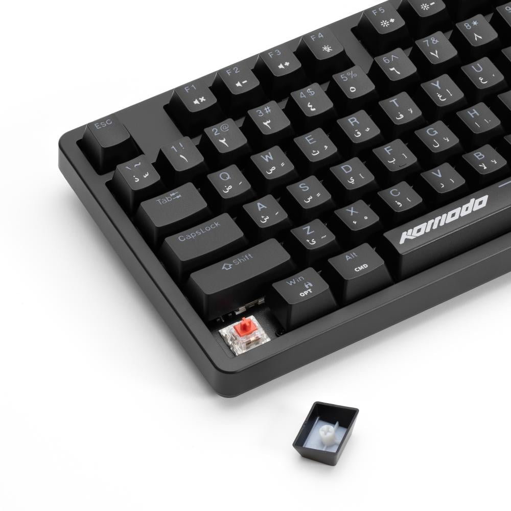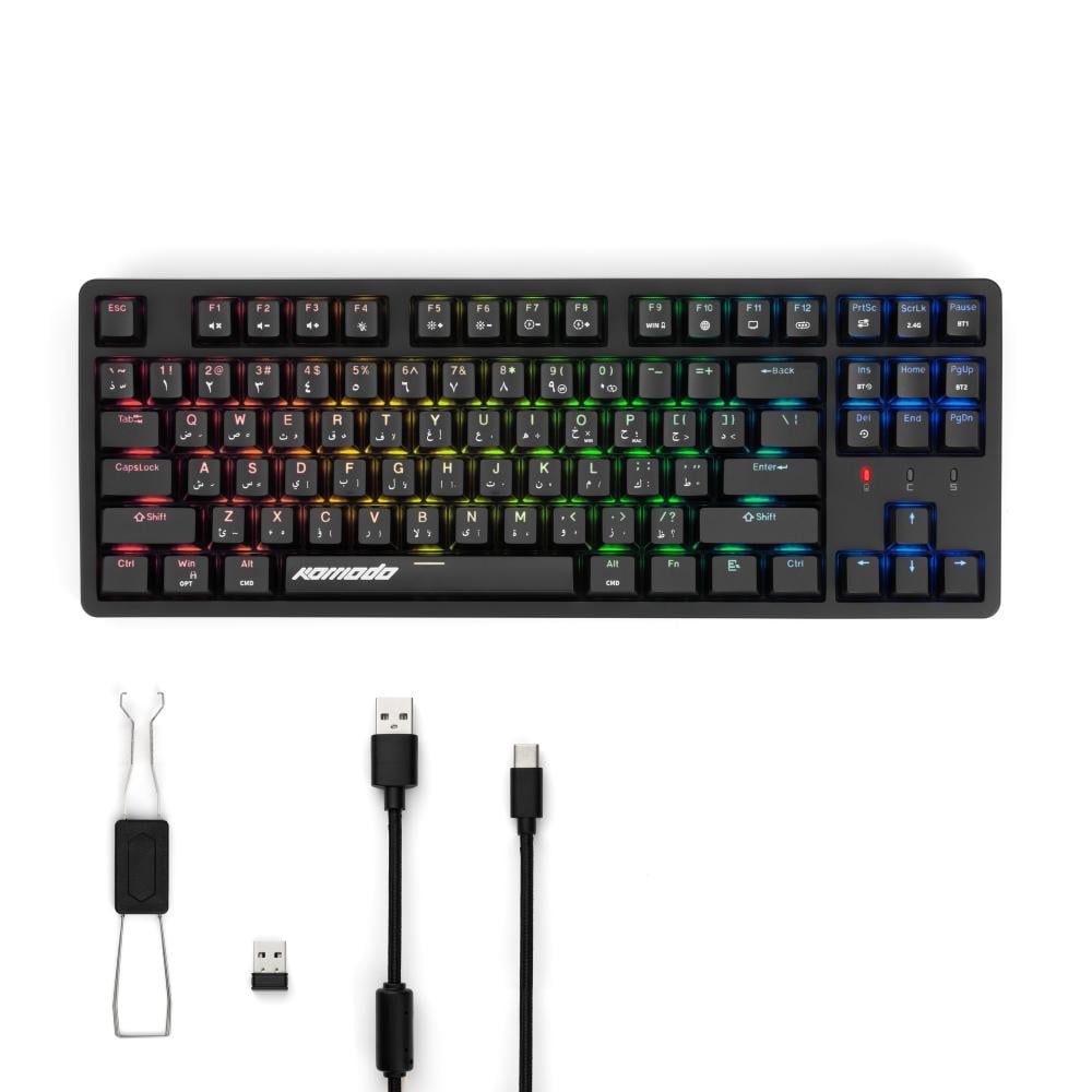 - الكيبورد يأتي بـ87 زر بتوزيع عربي وإنجليزي، بتصميم مدمج (80%) يجمع بين الحجم العملي وسرعة الأداء.